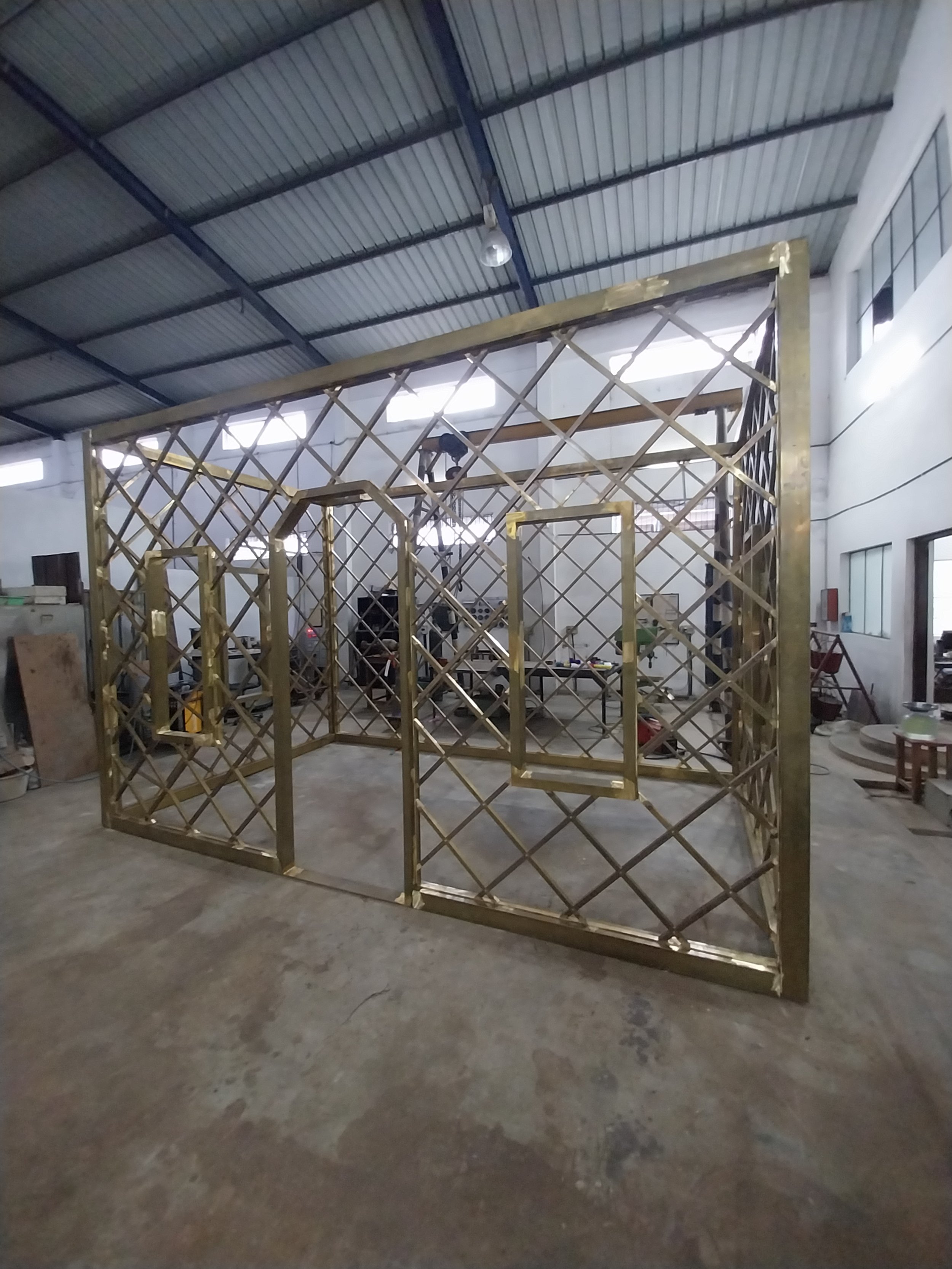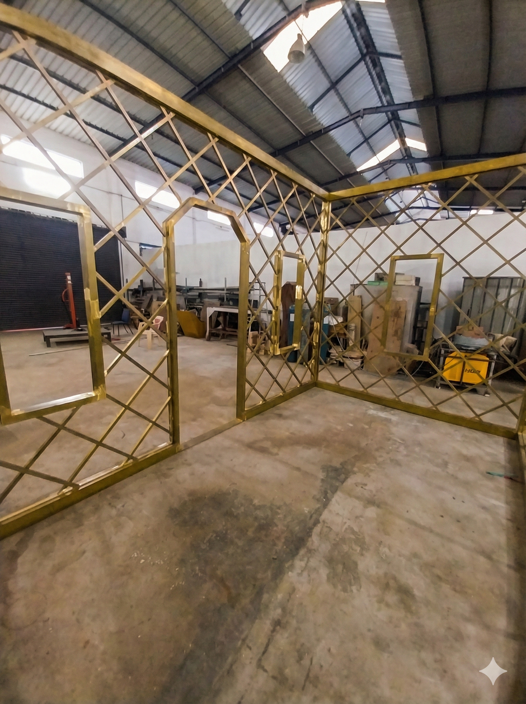 The project involved fabricating a modular lattice structure from solid and tubular brass members, engineered for flat-pack transport, precise reassembly, and installation within restricted site conditions.